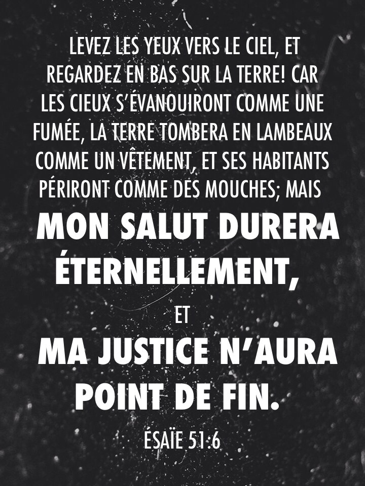 Cet article, publié dans Esaïe, est tagué éternel, éternité, ciel, cieux, mort, salut, terre, yeux. Ajoutez ce permalien à vos favoris.