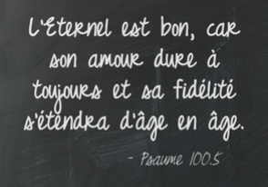 Cet article, publié dans Psaumes, est tagué amour, éternel, bonté, fidélité. Ajoutez ce permalien à vos favoris.