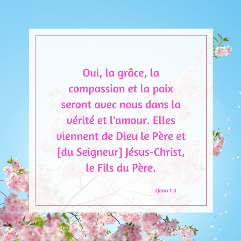 Cet article, publié dans 2Jean, est tagué amour, compassion, Dieu, Fils, grâce, Jésus, paix, père, vérité, venant. Ajoutez ce permalien à vos favoris.