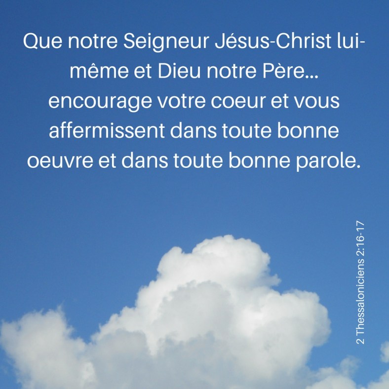 Cet article, publié dans 2Thessaloniciens, est tagué affermir, coeur, Dieu, Jésus-Christ, oeuvre, parole. Ajoutez ce permalien à vos favoris.