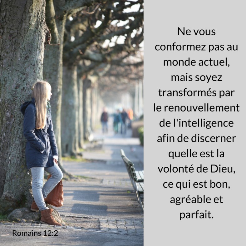 Cet article, publié dans Romains, est tagué agréable, bon, Dieu, discernement, intelligence, parfait, transformer, volonté. Ajoutez ce permalien à vos favoris.