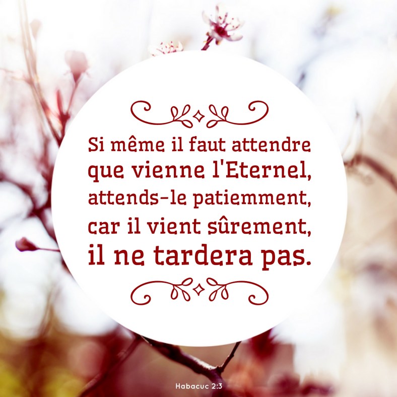 Cet article, publié dans Habakuk, est tagué attendre, patience, sûr, tarder, venue. Ajoutez ce permalien à vos favoris.