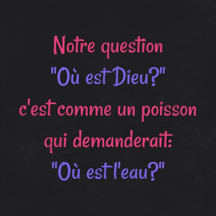 Cet article, publié dans Citations, est tagué analogie, Dieu, eau, humains, où, poisson, question. Ajoutez ce permalien à vos favoris.