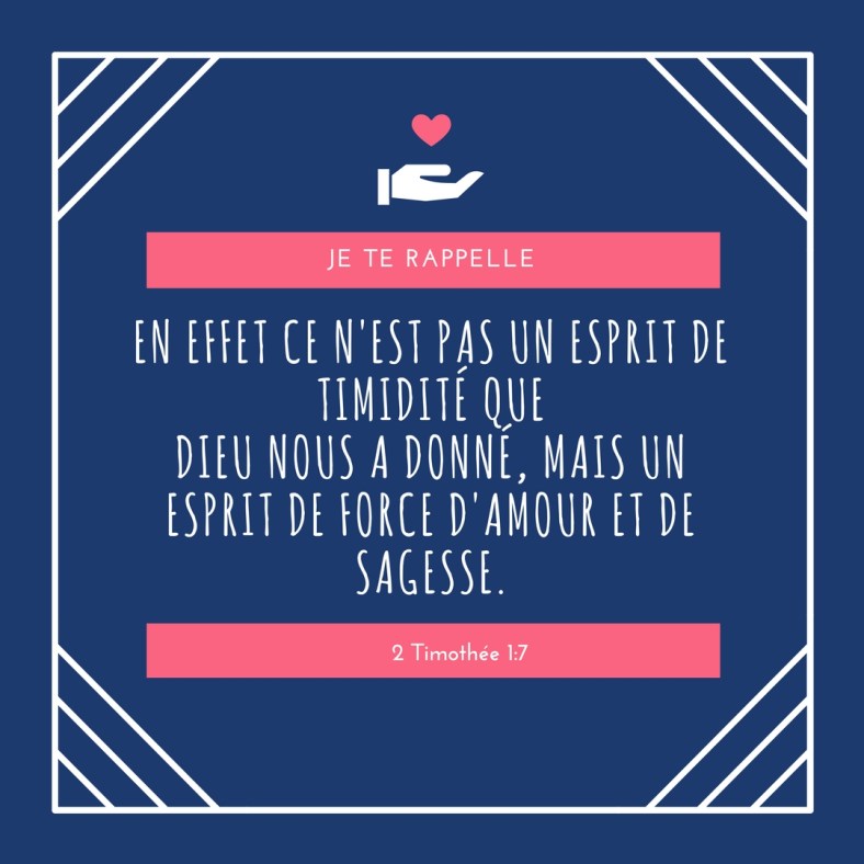 Cet article, publié dans 2Timothée, est tagué amour, Dieu, don, Esprit, force, Sagesse. Ajoutez ce permalien à vos favoris.