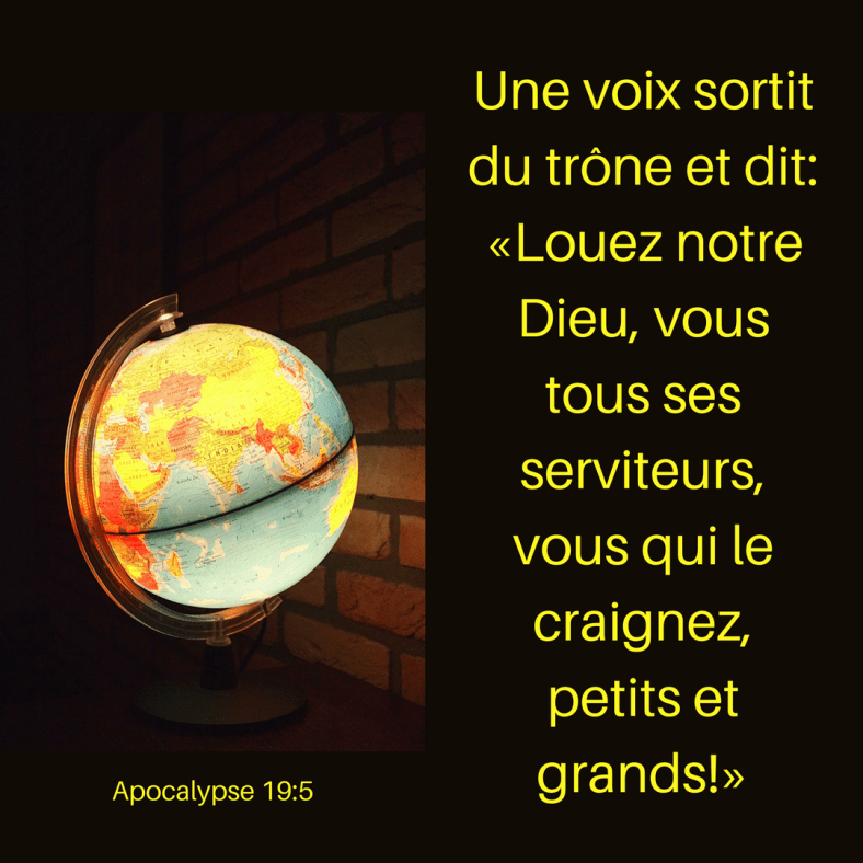 Cet article, publié dans Apocalypse, est tagué louer, respect, serviteur, tous. Ajoutez ce permalien à vos favoris.