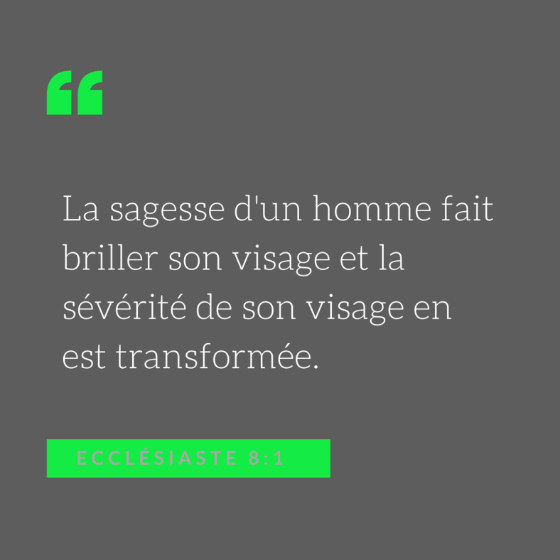 Cet article, publié dans Ecclésiaste, est tagué briller, Sagesse, transformé, visage. Ajoutez ce permalien à vos favoris.