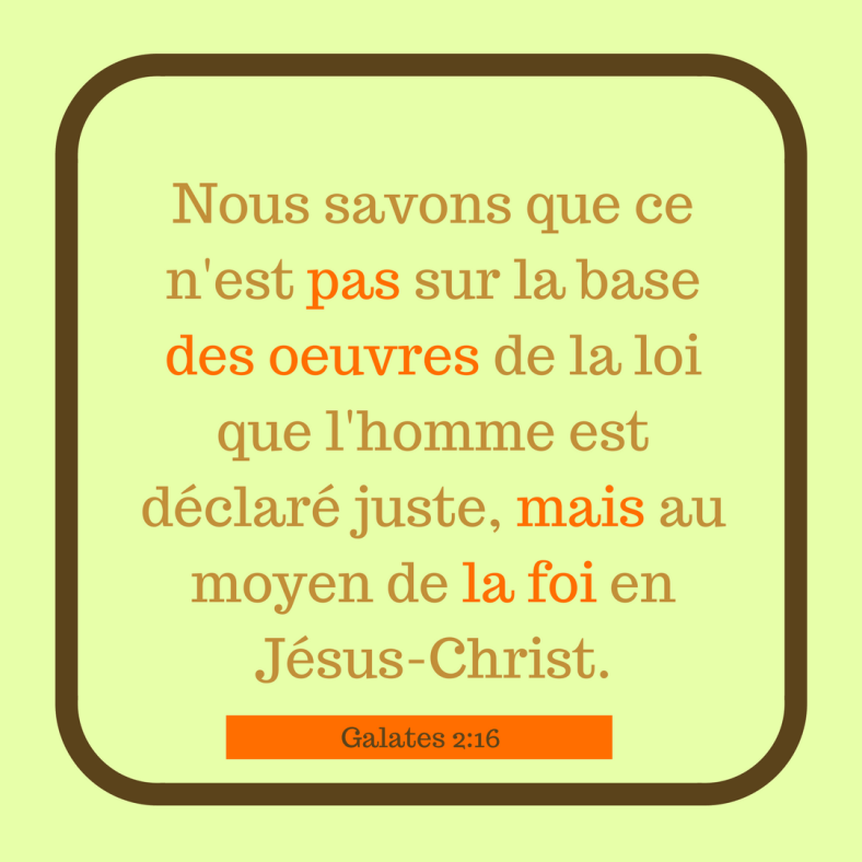 Cet article, publié dans Galates, est tagué foi, Jésus-Christ, loi, non, oeuvres, oui. Ajoutez ce permalien à vos favoris.