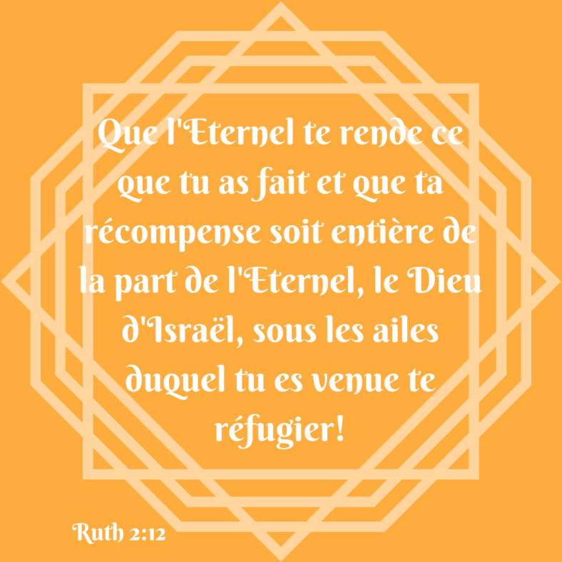 Cet article, publié dans Ruth, est tagué ailes, cadeaux, Dieu, protection, récompense, refuge. Ajoutez ce permalien à vos favoris.