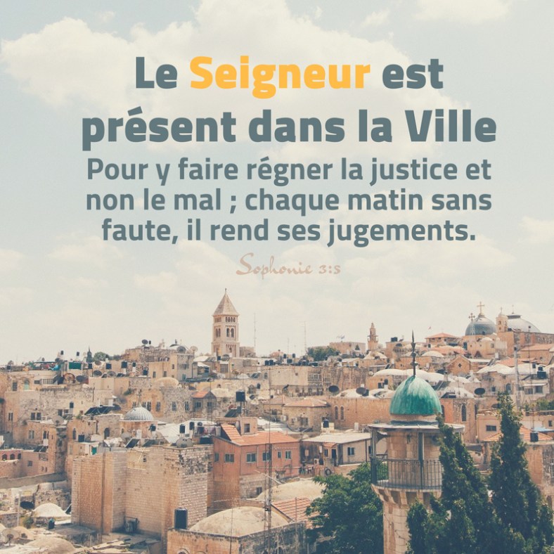 Cet article, publié dans Sophonie, est tagué droit, jugements, justice, matin, présent, Seigneur, ville. Ajoutez ce permalien à vos favoris.