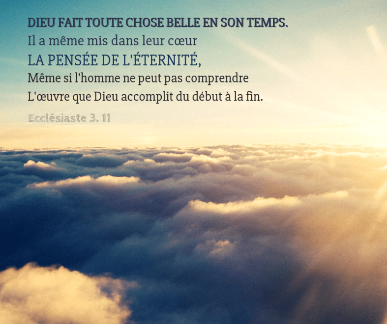 Cet article, publié dans Ecclésiaste, est tagué éternité, belle, coeur, comprendre, Dieu, humains, temps. Ajoutez ce permalien à vos favoris.
