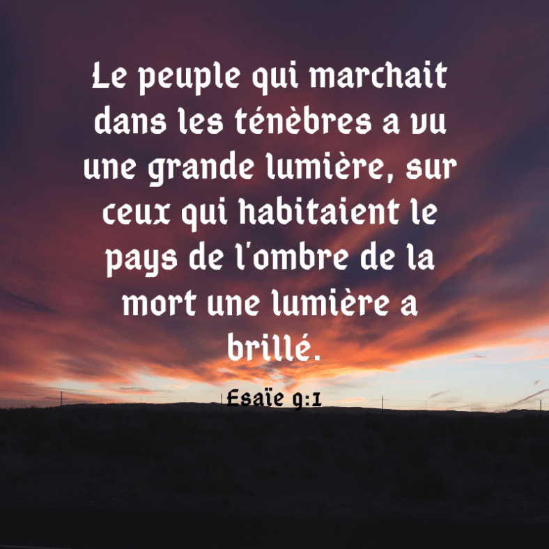 Cet article, publié dans Esaïe, est tagué briller, grande, lumière, marcher, pays, peuple, ténèbres, voir. Ajoutez ce permalien à vos favoris.