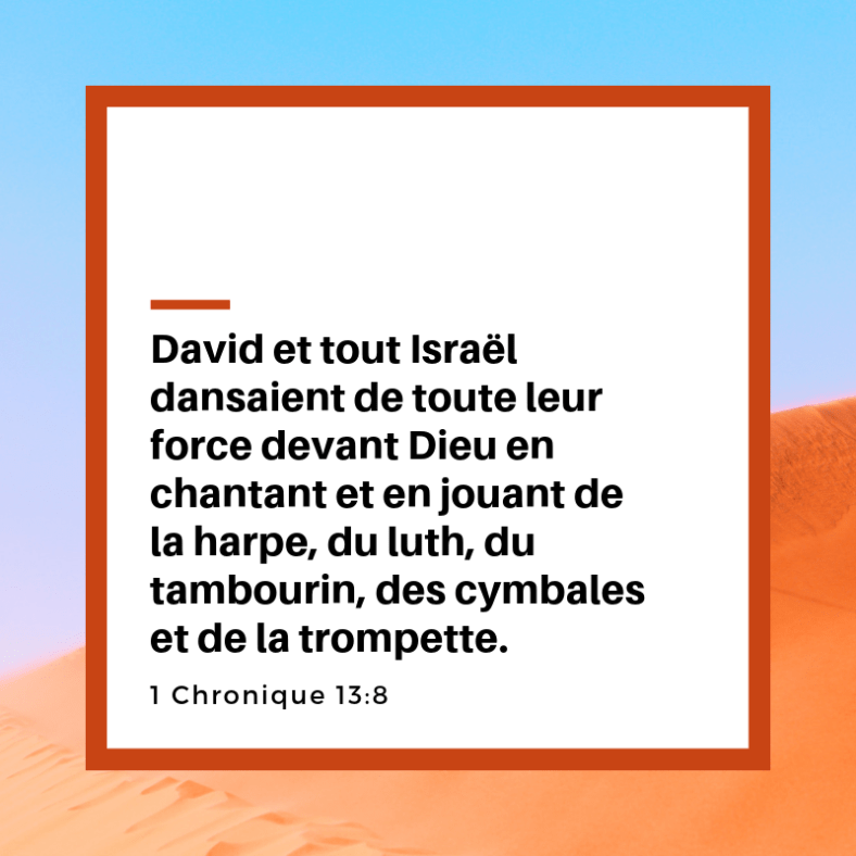 Cet article, publié dans 1Chroniques, est tagué chanter, cymbales, danser, David, Dieu, jouer, luth, peuple, tambourin, trompette. Ajoutez ce permalien à vos favoris.