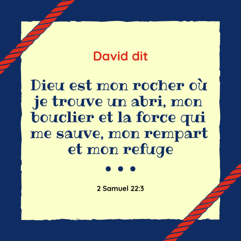 Cet article, publié dans 2Samuel, est tagué abri, bouclier, défense, Dieu, force, forteresse, protection, refuge, rocher, salut. Ajoutez ce permalien à vos favoris.