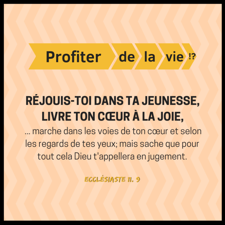Cet article, publié dans Ecclésiaste, est tagué coeur, Dieu, jeunesse, jugement, marcher, profiter, réjouir, yeux. Ajoutez ce permalien à vos favoris.
