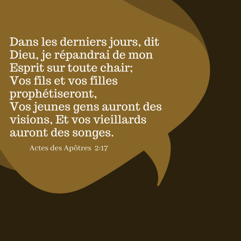 Cet article, publié dans Actes, est tagué derniers, filles, Fils, jeunes, jours, prophétiser, Saint-Esprit, songes, tous, vieillards, visions. Ajoutez ce permalien à vos favoris.