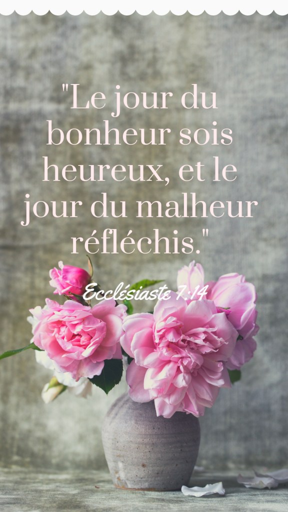 Cet article, publié dans Ecclésiaste, est tagué bonheur, heureux, jour, malheur, réfléchir. Ajoutez ce permalien à vos favoris.