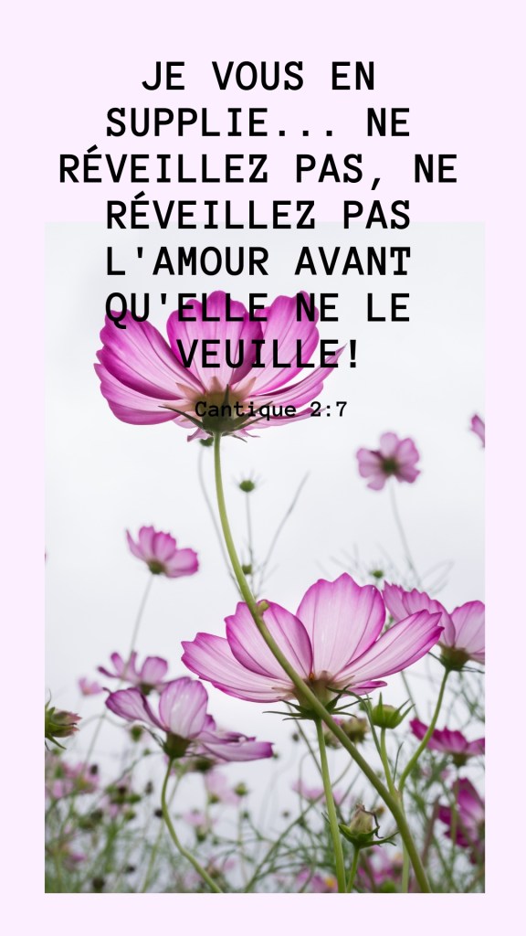 Cet article, publié dans Cantique des Cantiques, est tagué décider, dormir, l'Amour, réveiller, supplier. Ajoutez ce permalien à vos favoris.