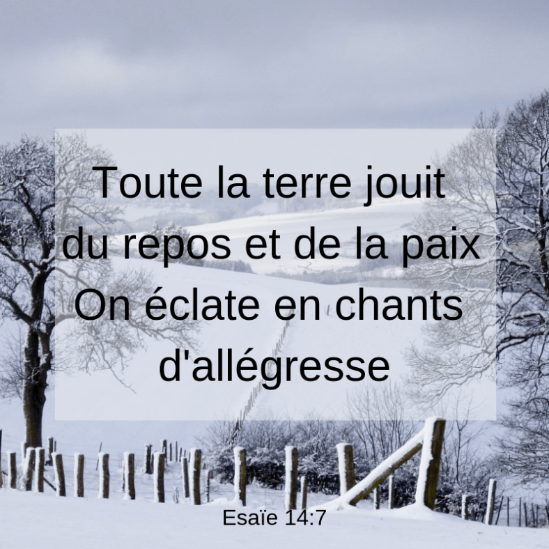 Cet article, publié dans Esaïe, est tagué allégresse, chants, joie, paix, repos, terre. Ajoutez ce permalien à vos favoris.