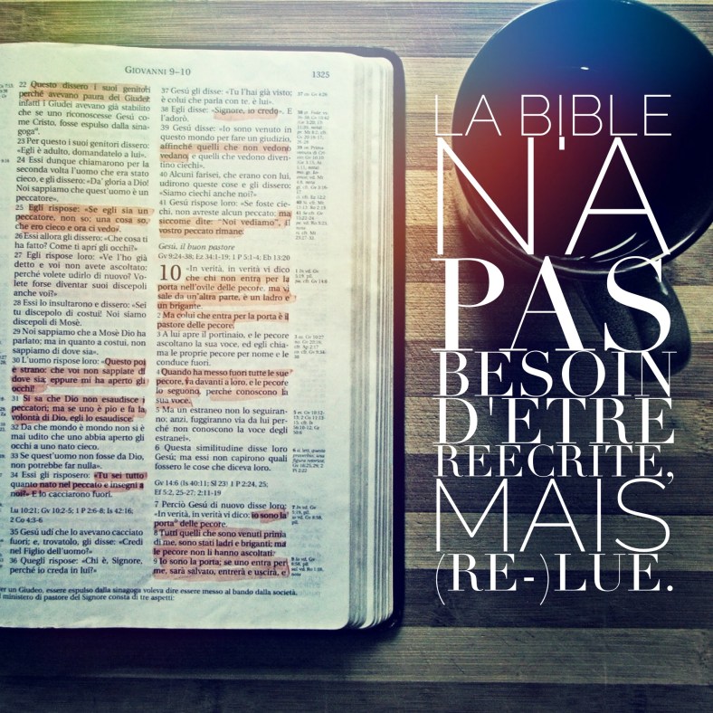 La Bible mon livre de chevet mais pas que, elle est aussi mon livre de médecine pour les tout les moments joyeux ou mauvais de ma vie. Je l’adore, c’est mon chemin de vie !!