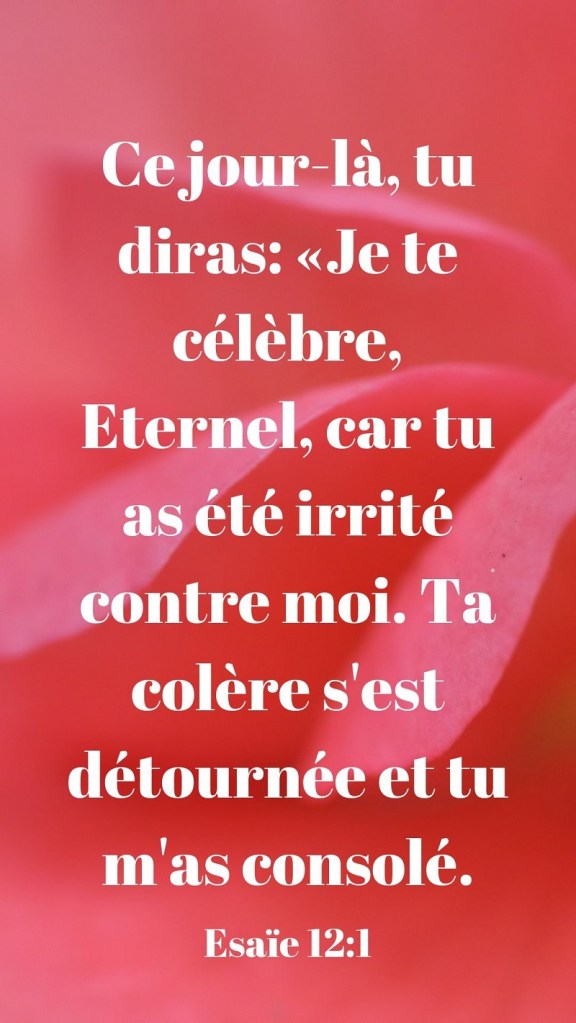 Cet article, publié dans Esaïe, est tagué célébrer, colère, consolé, détournée, Dieu, irrité, jour, l'Eternel. Ajoutez ce permalien à vos favoris.