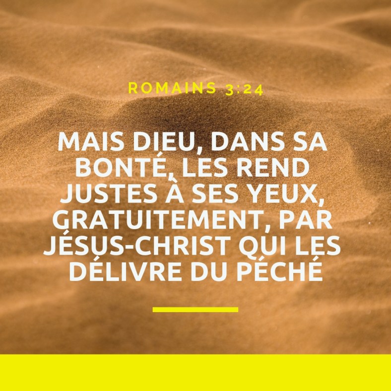 Cet article, publié dans Romains, est tagué bonté, délivrer, Dieu, gratuitement, Jésus-Christ, justes, péché. Ajoutez ce permalien à vos favoris.