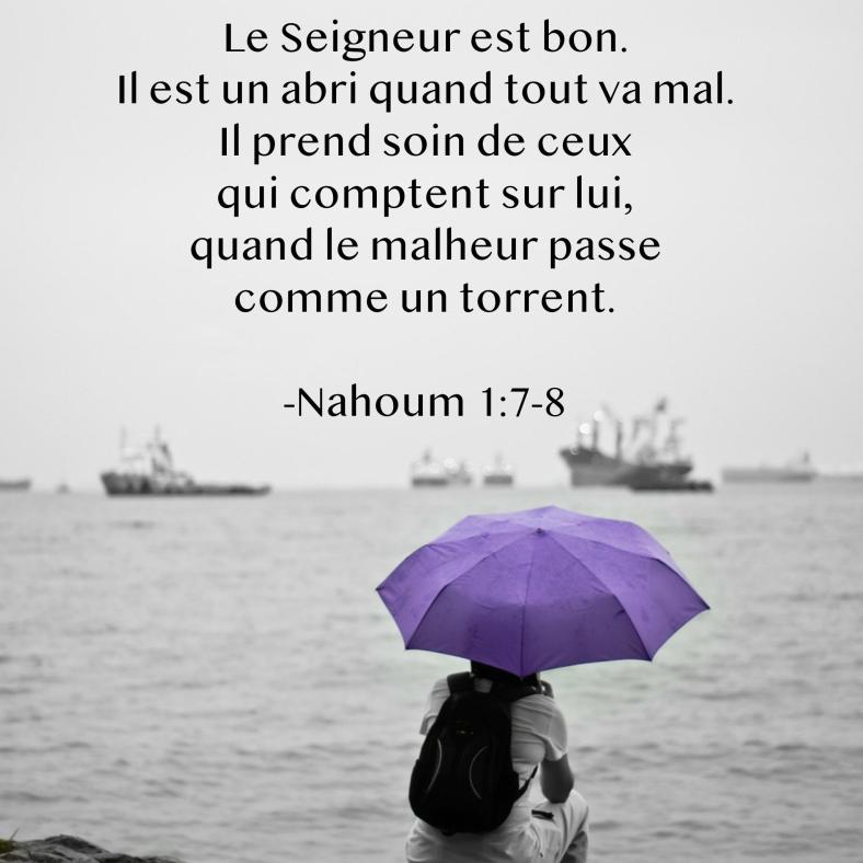 Cet article, publié dans Nahum, est tagué abri, bon, confiance, malheur, Seigneur, soin, torrent. Ajoutez ce permalien à vos favoris.
