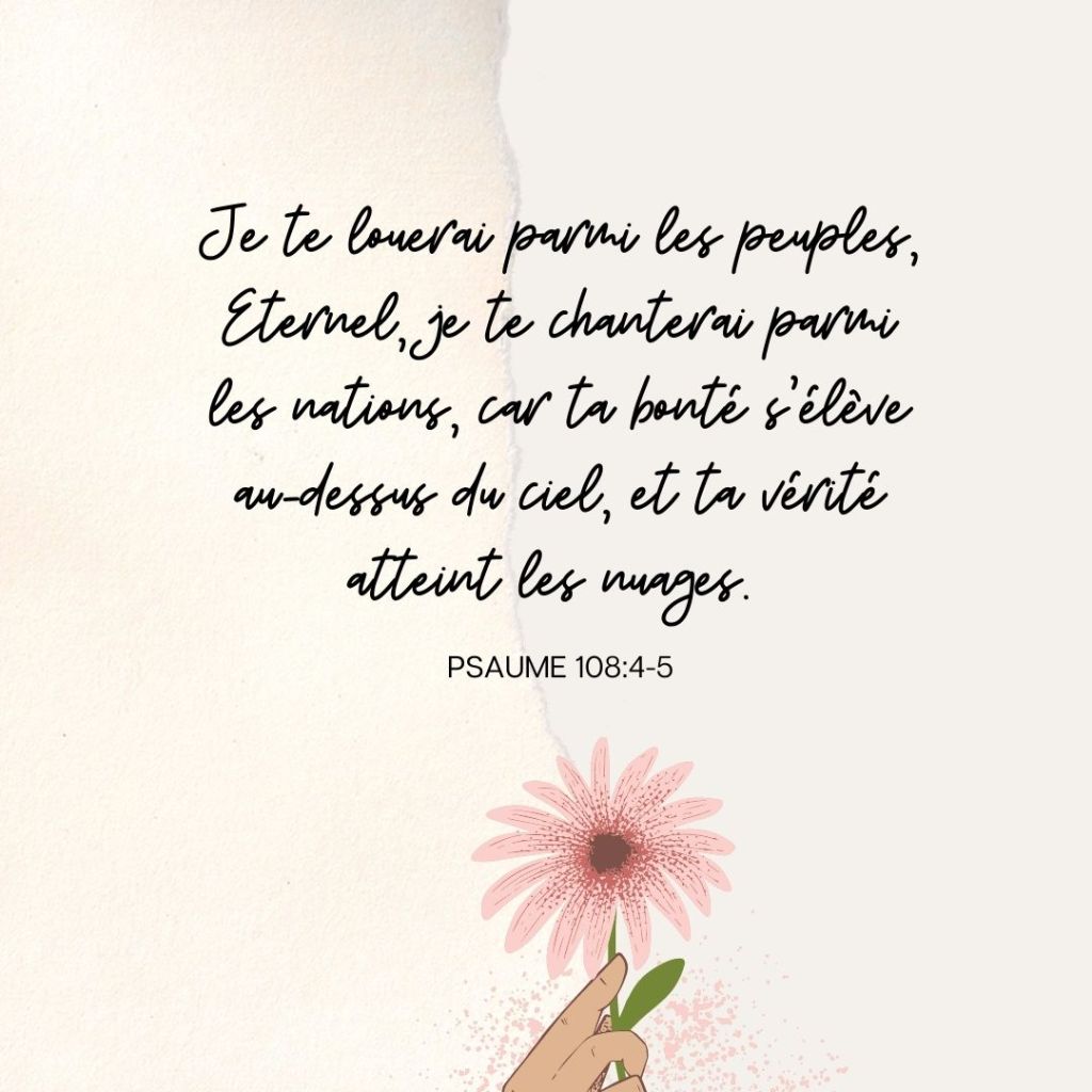 Cet article, publié dans Psaumes, est tagué au-dessus, bonté, chanter, ciel, Dieu, l'Eternel, louer, nuages, peuples, vérité. Ajoutez ce permalien à vos favoris.