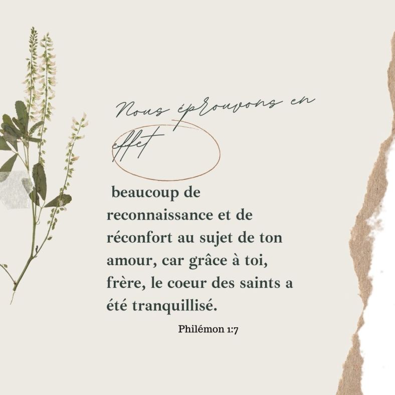Cet article, publié dans Philémon, est tagué amour, éprouver, coeur, frère, grâce, réconfort, reconnaissance, tranquille. Ajoutez ce permalien à vos favoris.