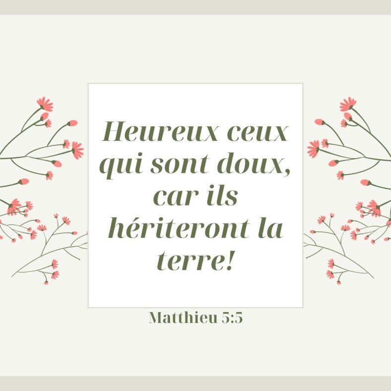 Cet article, publié dans Matthieu, est tagué #paroledeJésus, douceur, hériter, heureux, terre. Ajoutez ce permalien à vos favoris.