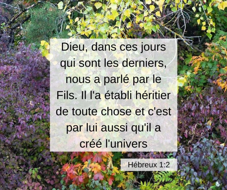 Cet article, publié dans Hébreux, est tagué établi, Créateur, derniers, Dieu, héritier, Jésus-Christ, jours, le Fils, parler, univers. Ajoutez ce permalien à vos favoris.