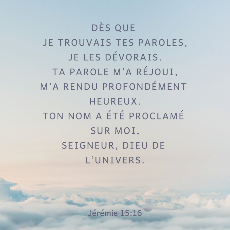 Cet article, publié dans Jérémie, est tagué dévorer, Dieu, heureux, l'univers, nom, Parole de Dieu, proclamer, profondément, réjouir, Seigneur, trouver. Ajoutez ce permalien à vos favoris.