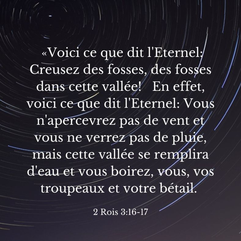 Cet article, publié dans 2Rois, est tagué bétail, boire, creuser, Dieu, eau, fosses, humains, parole, pluie, remplir, troupeaux, vallée, vent, voir. Ajoutez ce permalien à vos favoris.
