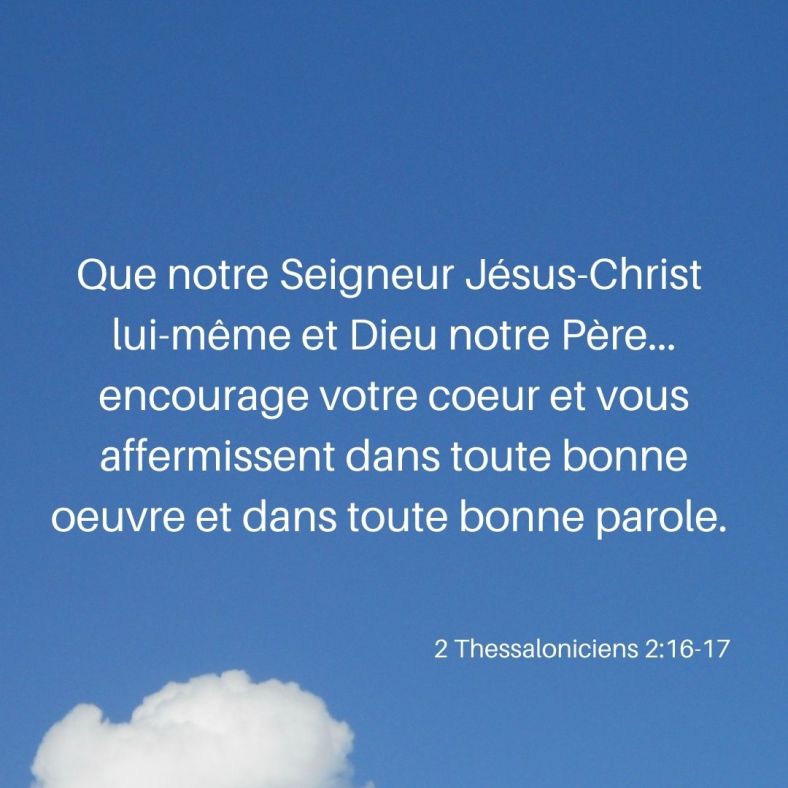 Cet article, publié dans 2Thessaloniciens, est tagué affermir, bonne, coeur, Dieu, encourager, Jésus-Christ, le Père, oeuvre, parole, Seigneur. Ajoutez ce permalien à vos favoris.
