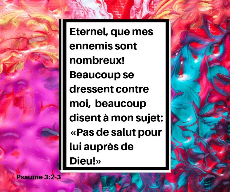 Cet article, publié dans Psaumes, est tagué beaucoup, contre, Dieu, dire, dresser, ennemis, l'Eternel, nombreux, salut. Ajoutez ce permalien à vos favoris.