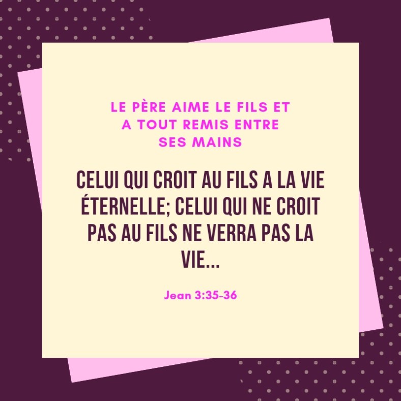 Cet article, publié dans Jean, est tagué aimer, éternelle, confiance, croire, la foi, le Fils, le Père, mains, mettre dans, tout, vie. Ajoutez ce permalien à vos favoris.