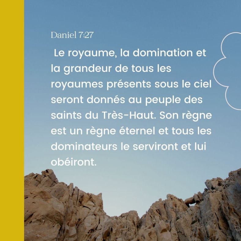 Cet article, publié dans Daniel, est tagué éternel, ciel, Dieu, domination, donner, grandeur, obéir, peuple saint, règne, royaume, servir, très-haut. Ajoutez ce permalien à vos favoris.
