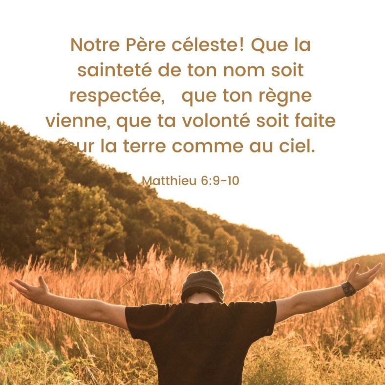 Cet article, publié dans Matthieu, est tagué avenir, céleste, ciel, la terre, le Père, nom, règne, respect, saint, volonté. Ajoutez ce permalien à vos favoris.