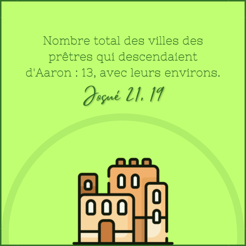 Cet article, publié dans Josué, est tagué 13, environs, nombre, prêtres, total, treize, villes. Ajoutez ce permalien à vos favoris.