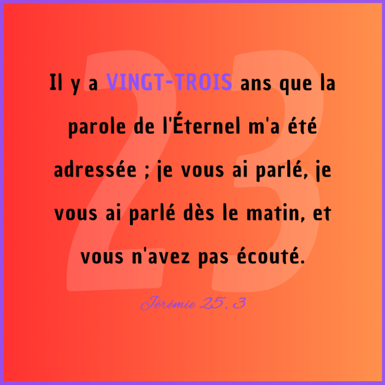 23. Il y a VINGT-TROIS ans que la parole de l’Eternel m’a été adressée