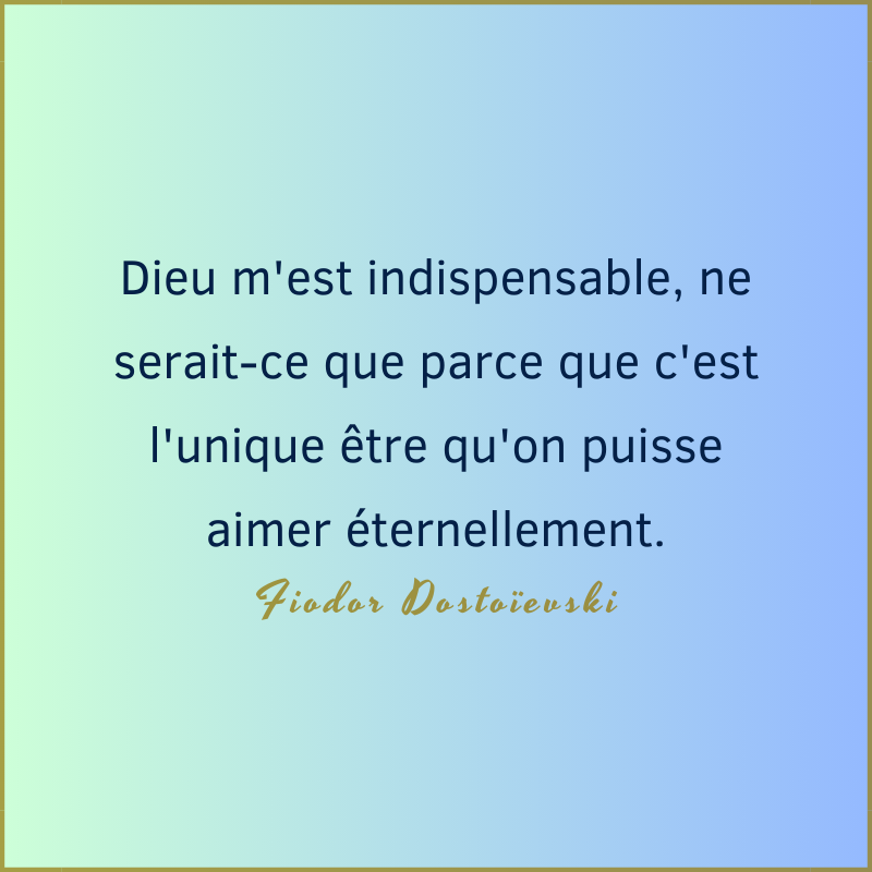 Cet article, publié dans Citations, est tagué aimer, éternellement, Dieu est, Dostoïevski, indispensable, pouvoir, unique. Ajoutez ce permalien à vos favoris.