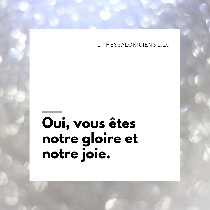 Cet article, publié dans 1Thessaloniciens, est tagué être, gloire, Jésus, joie, Seigneur. Ajoutez ce permalien à vos favoris.