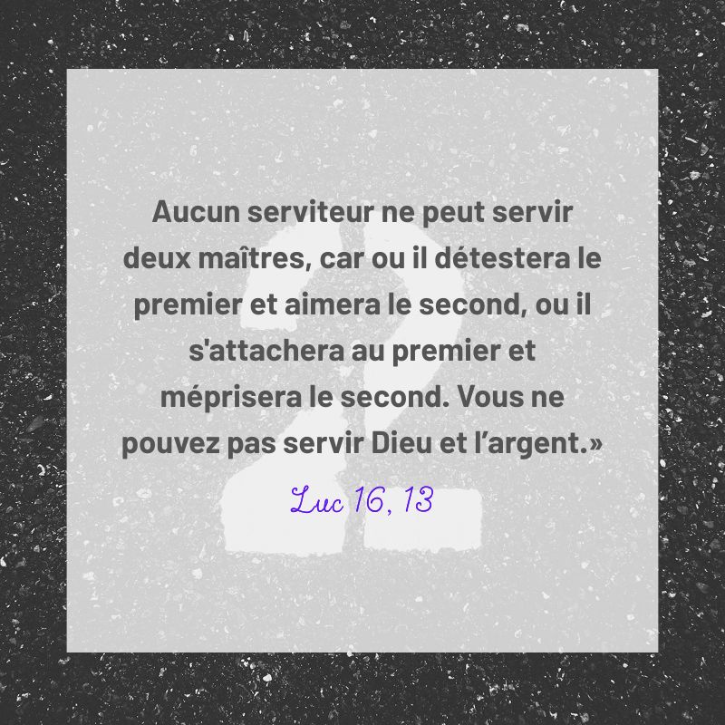 Cet article, publié dans Luc, est tagué #paroledeJésus, 2, aimer, aucun, détester, deux, Dieu, impossible, l'argent, maîtres, mamon, mépriser, premier, s'attacher, second, servir, serviteur, un. Ajoutez ce permalien à vos favoris.