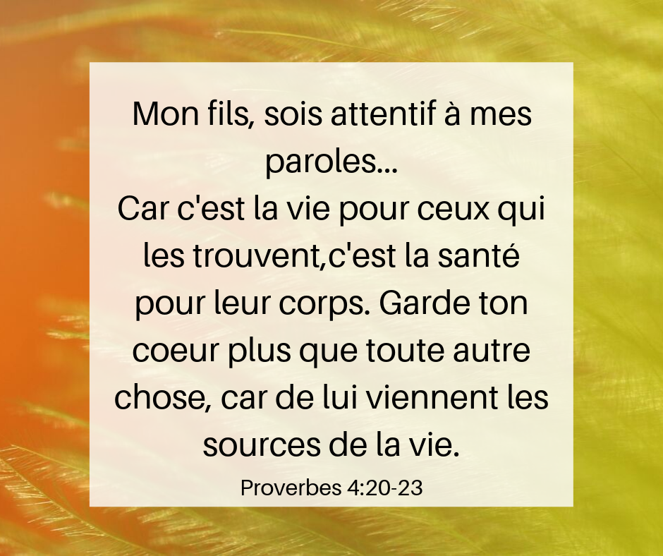 Cet article, publié dans Proverbes, est tagué attentif, être, coeur, corps, garder, gens, mon fils, paroles, plus, santé, sources, tout, trouver, venir, vie. Ajoutez ce permalien à vos favoris.