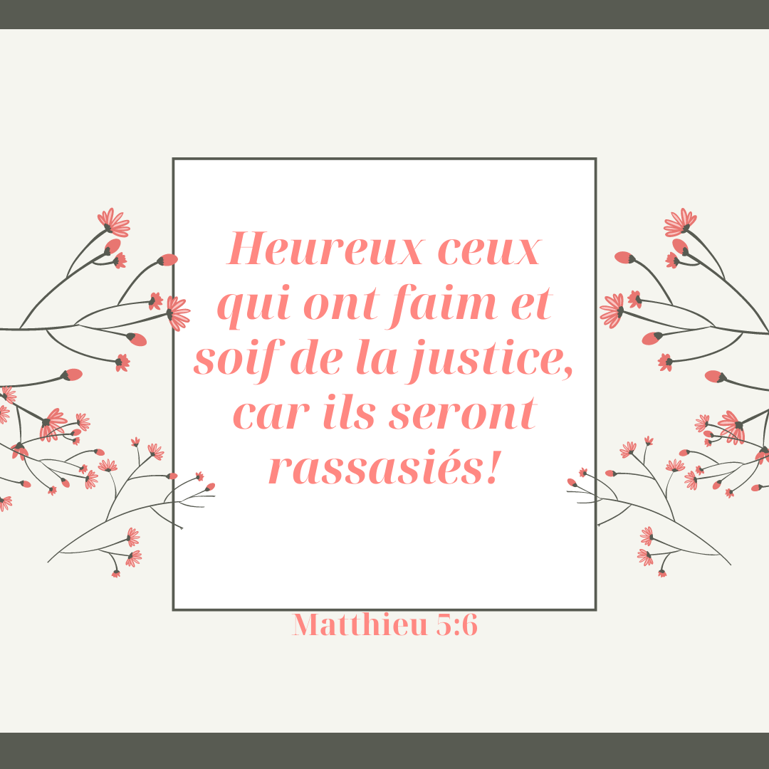 Cet article, publié dans Matthieu, est tagué #paroledeJésus, ceux, faim, heureux, justice, rassasier, soif. Ajoutez ce permalien à vos favoris.