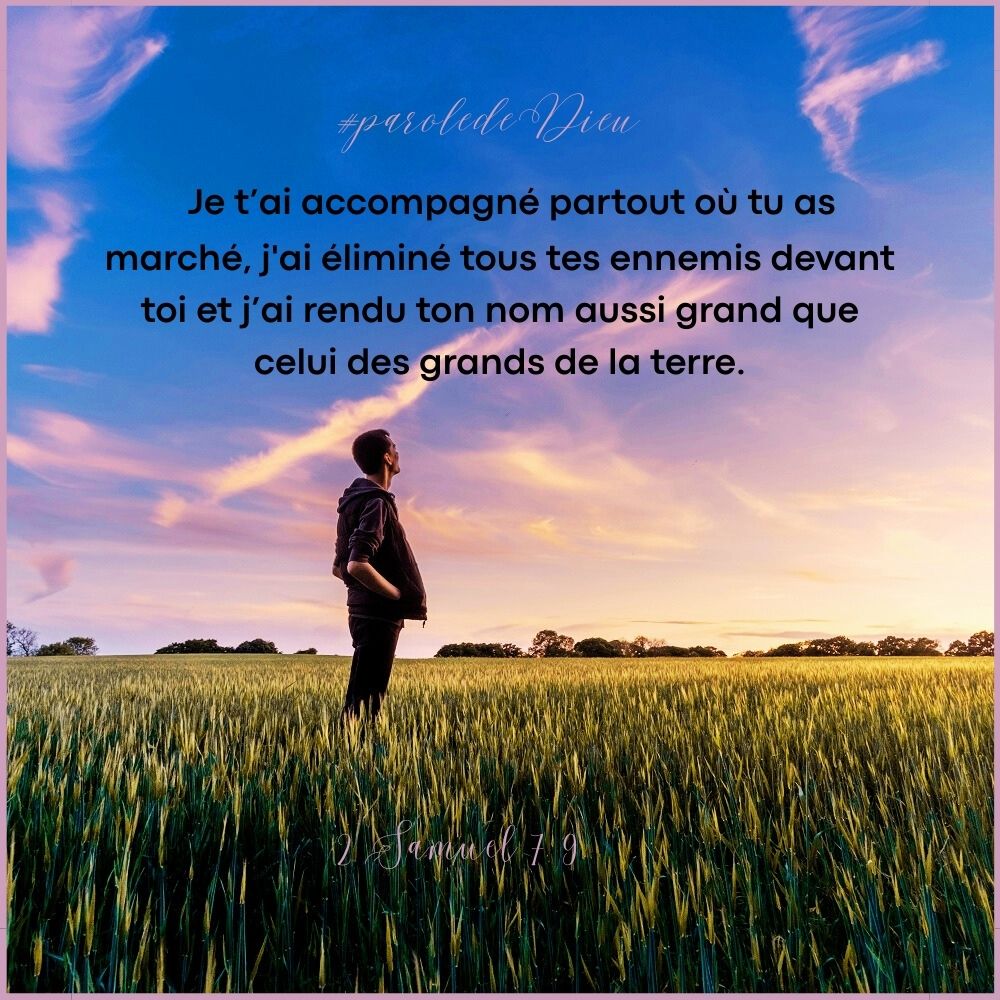 Cet article, publié dans 2Samuel, est tagué accompagner, éliminer, devant, Dieu, ennemis, grand, la terre, marcher, nom, partout, rendre, roi. Ajoutez ce permalien à vos favoris.